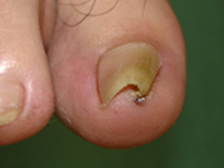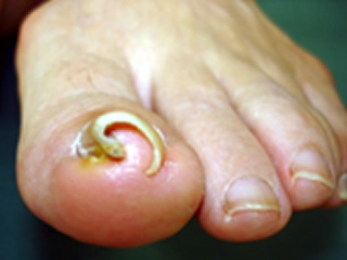 巻き込んだ爪により軟部組織が傷つけられて潰瘍ができ、細菌の感染を受ければ炎症を起こし、更に激しく痛み悪化していきます。