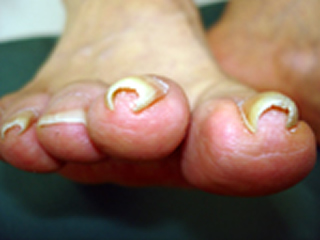 - 爪による皮膚への圧迫、また靴、ストッキングによるさらなる圧迫